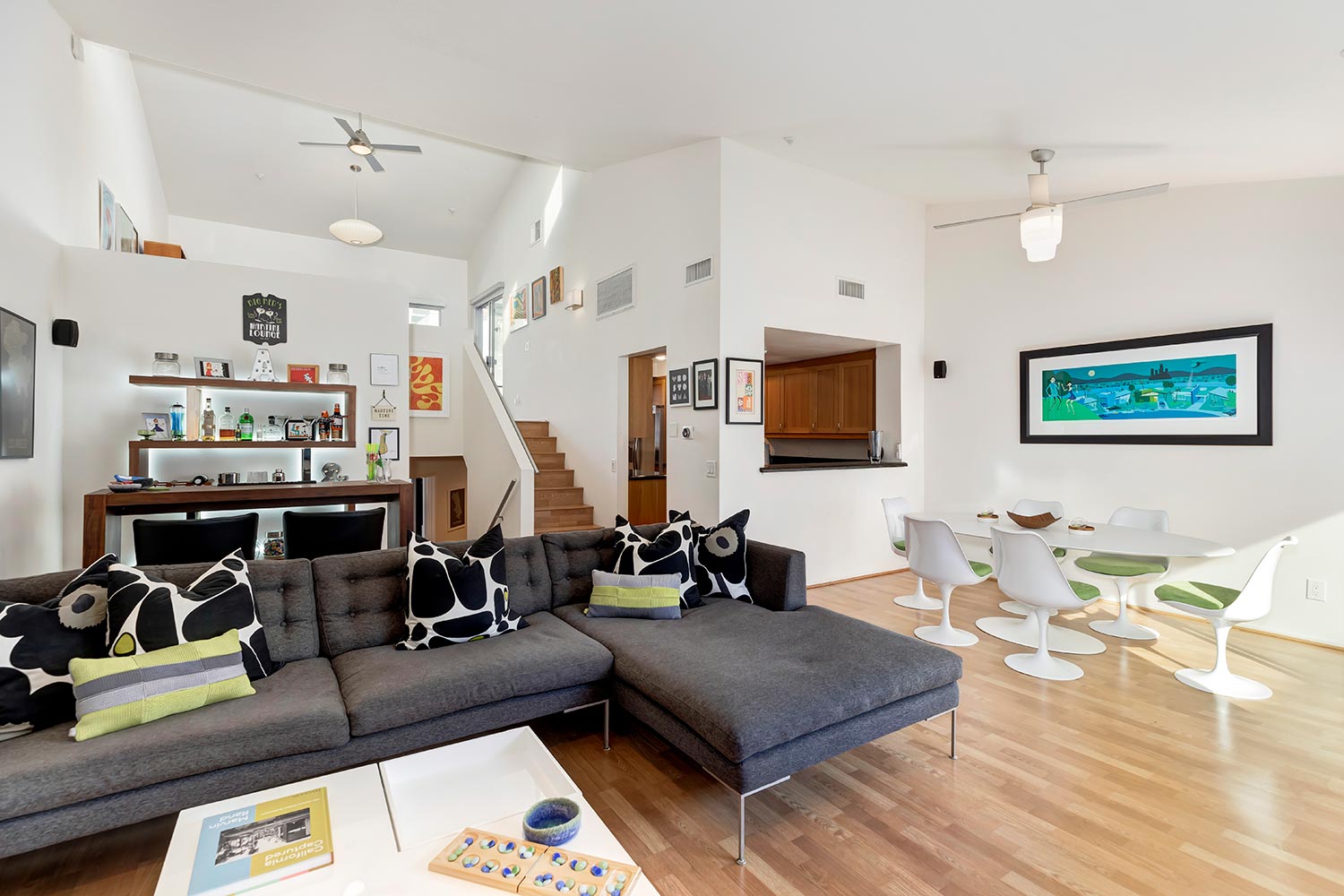 Once owned by Jerry Seinfeld, this beautifully updated townhouse condo is located in the center of prime West Hollywood. Guest bedroom, spacious bathroom with walk in shower, and a laundry closet on the entrance level. Downstairs leads to a secluded master bedroom with large walk in closet and an en suite bathroom with walk in shower and spa bathtub. Upstairs opens up to an open plan, split level living room made complete with a gas fireplace and adjacent to an updated kitchen with an open pass through to the dining room! Two private balconies, NEST thermostat, central AC/heat, recessed lighting, two assigned side by side parking spaces are some of the features on offer. Minutes away from comedy clubs, restaurants and bars on Santa Monica Blvd and the Sunset Strip, shopping on Melrose, or sight seeing in Hollywood and Beverly Hills.